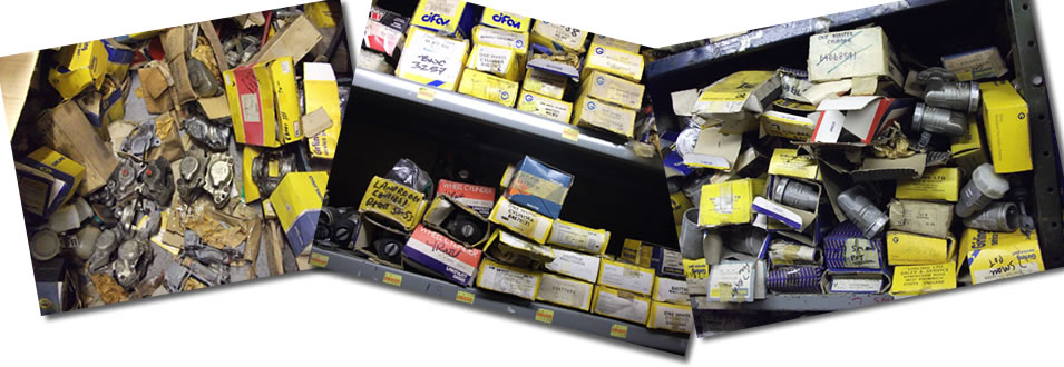 Do these Pictures Look Familiar? If they do read on... For Many Years David Kingerley and the staff at Classic Car Spares have been at the forefront of the automotive stock clearance industry. As one of the UK's leading buyers of obsolete car parts, we offer a prompt and efficient stock clearance service to garages, motor factors, auto-electricians, spares shops and other automotive trade businesses all over the country. Whether you are stock clearing closing down or just re-organising we are the people to call. We buy all parts from the 1930s to the present day . Although we predominantly buy from garages and motor factors, we are also more than happy to consider buying parts from private individuals. We are interested in buying brake cylinders, brake shoes, brake pads, clutches steering and suspension parts, shock absorbers, gaskets, water pumps filters, body panels, chrome work, hydraulics, engines, gearboxes, engine spares, electrical parts, after market accessories and general automobilia and any other motor vehicle parts, including lorry and tractor parts. Call us now for a fast response and clear your shelves of those old and unwanted parts that have been cluttering up your shelves and taking up space for years. |